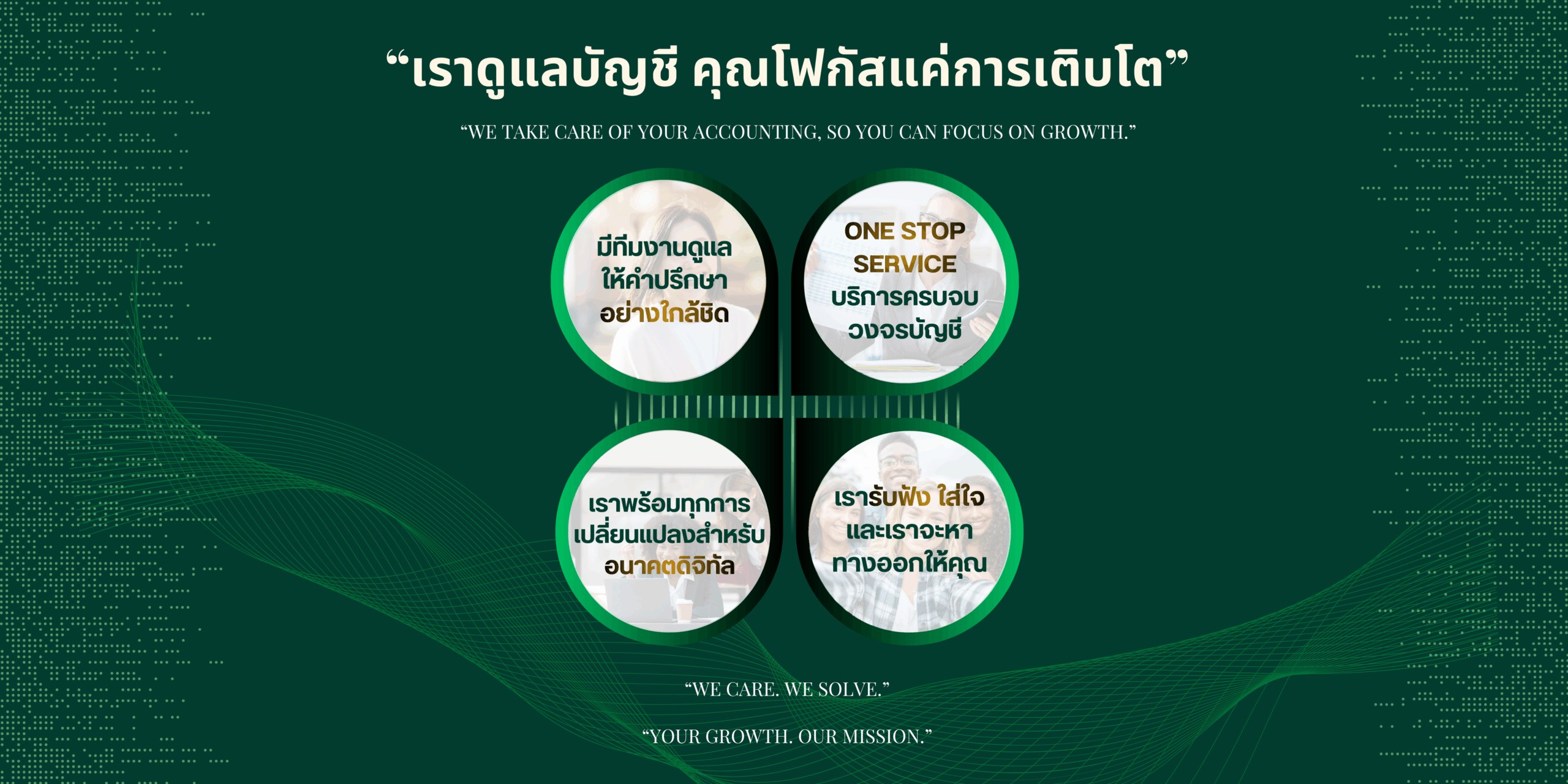 เราไม่ได้เป็นแค่ผู้ทำบัญชี แต่เป็น “ที่ปรึกษาทางธุรกิจ” ที่จะอยู่เคียงข้างคุณในทุกช่วงของการเติบโต