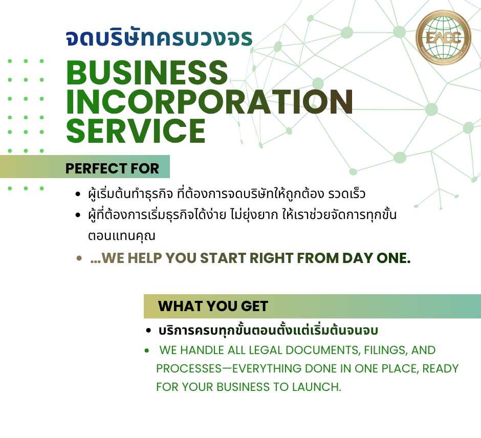 We handle all documents, filings, and legal processes from A to Z. - เสร็จสมบูรณ์ในที่เดียว พร้อมให้คุณเริ่มธุรกิจได้ทันที