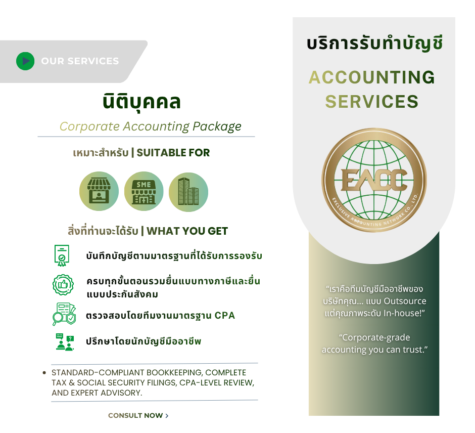บริการทำบัญชีนิติบุคคล (Corporate Accounting Package)